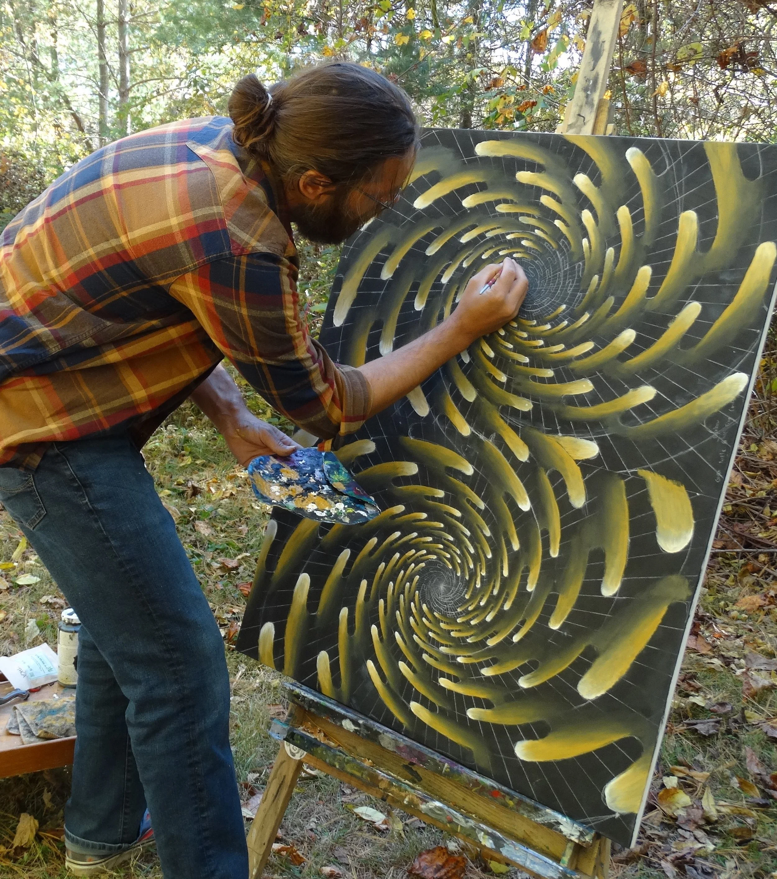 ""I often get asked where my inspiration comes from, I think most people kind of already know though. Meditation yes, yoga yes, visionary experiences, check. But I spend a lot of time alone out in nature as well, soaking in the wilderness, listening to its voices, and just kind of letting my mind roll through these philosophical landscapes. It brings on sort of a de-conditioning to the "modern life" and I can view the world more essentially. These experiences are at the foundation of my artistic drive. I try to work through these ideas and concepts that connect us back to nature and to the mystery of this Moment, to spirit. When we speak of our spirit, our speech is usually clouded in symbolism and the pretension of things that words cannot really touch. The arts allow us to communicate these ideas in ways that are undefined and alive in their umformulated expression. I believe we can reach a more encompassing understanding of our experience here in this life by utilizing the language of art""